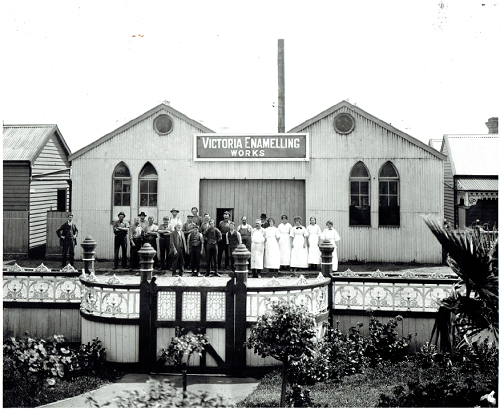 The Victorian Foundry and Enamelling Works (Victoria Enamelling) was founded by Francis Newberry and was originally located in Geelong West. The Newberry family operated the business until late 1970’s